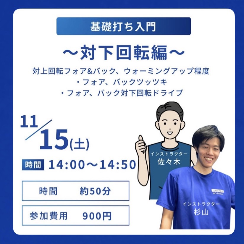 11月15日(土)開催予定❗️『基礎打ち入門〜対下回転編〜』